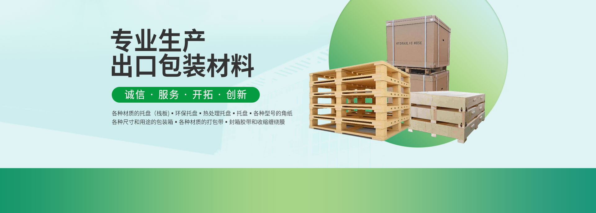 是一家集專業設計、生產、銷售為一體的現代化包裝企業,公司擁有現代化生產設備和高精度檢驗設備。公司主要生產各種木托盤(復合托盤)、木箱,月生產、銷售木托盤10萬片,生產、銷售木箱8000立方木,銷售護角900000余米。...